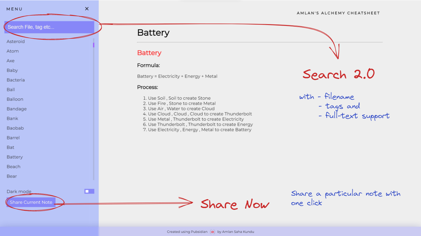 - New Pubsidian CORE, namely data2.json gives you the flexibility to choose the notes to list in pubsidian.